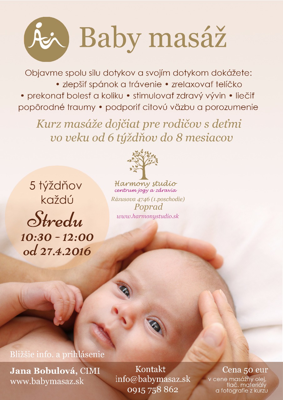 srdečne vás pozývam na skupinový kurz masáže v priestoroch Harmony studio v Poprade www.harmonystudio.sk Najbližší kurz otvárame v stredu 27. apríla 2016. Stretávať sa budeme v čase od 10:30 do 12:00.